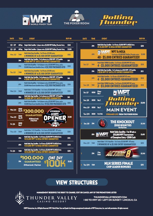 WPT-RollingThunder-SeriesSchedule2020 Published Saturday, 29 February 2020 at 612 × 864 in WPT-RollingThunder-SeriesSchedule2020 WPT Rolling Thunder, 2—10 March, Lincoln, CA