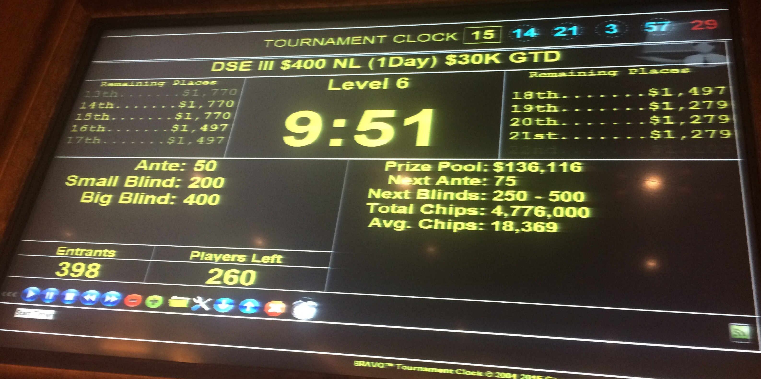 Regrettably, while I’d learned a lot about poker, I hadn’t learned much about bankroll management. The $4K represented a big chunk of money to someone without a job, but I was kind of fixated on running it up for a trip to Prague. and blew it on a last-ditch (with my 50th just a couple weeks away) effort by flying down to Vegas within a couple hours of my win, regging for a Venetian Deepstack Extravaganza Main Event, and busting out after about five hours.