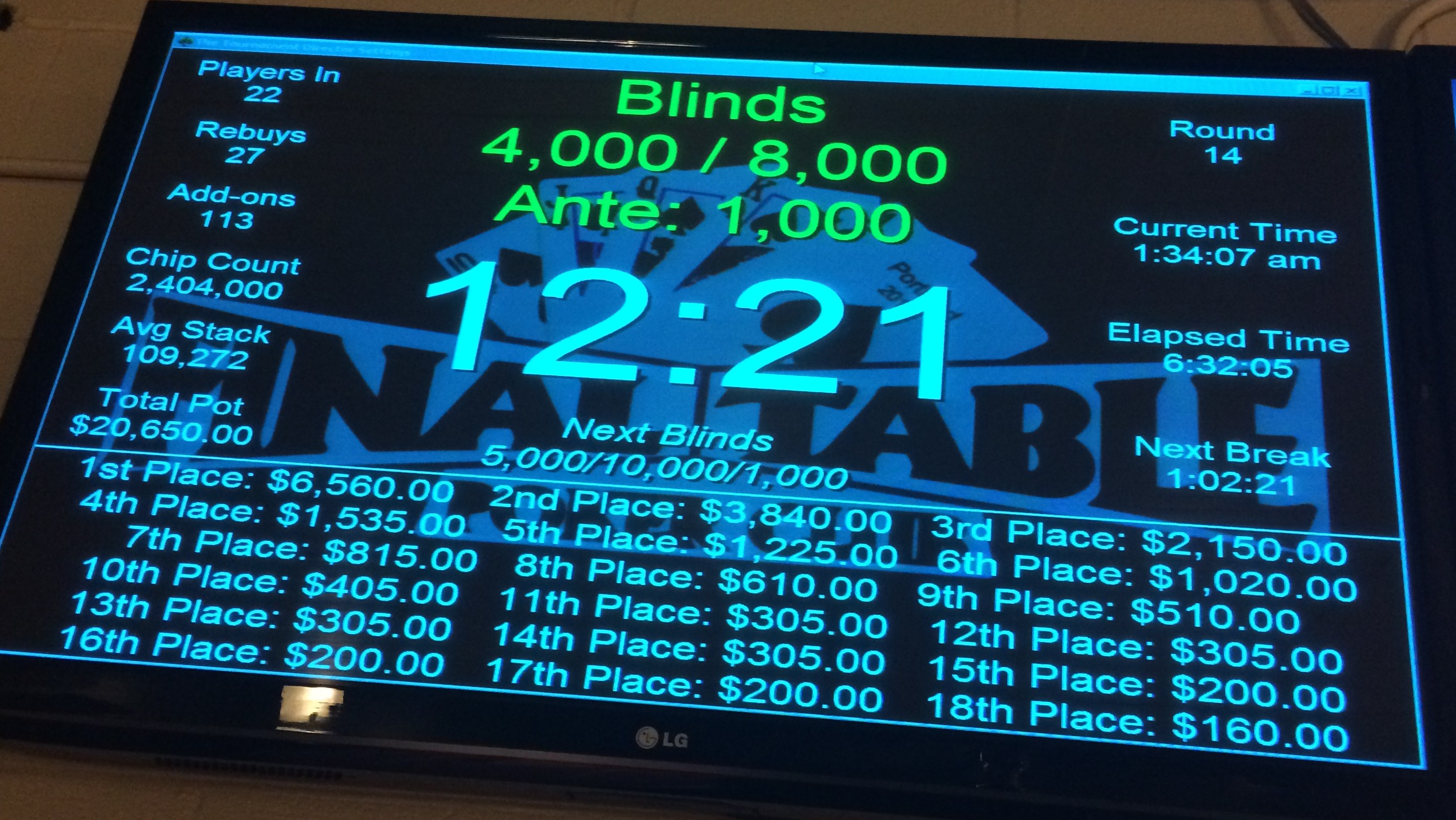 Coming up: I should have another article for PokerNews.com soon. After the podcast tonight, I might try the HOP (NLHE, PLO, Pineapple) tournament at Big Stacks Poker Club (a new venue for me), then the next big things are a tournament at Final Table with a $10K guarantee for first place on the 18th, and the Encore Poker Series V running from the 23rd to the 26th, with a total of $125K in guarantees in four events.