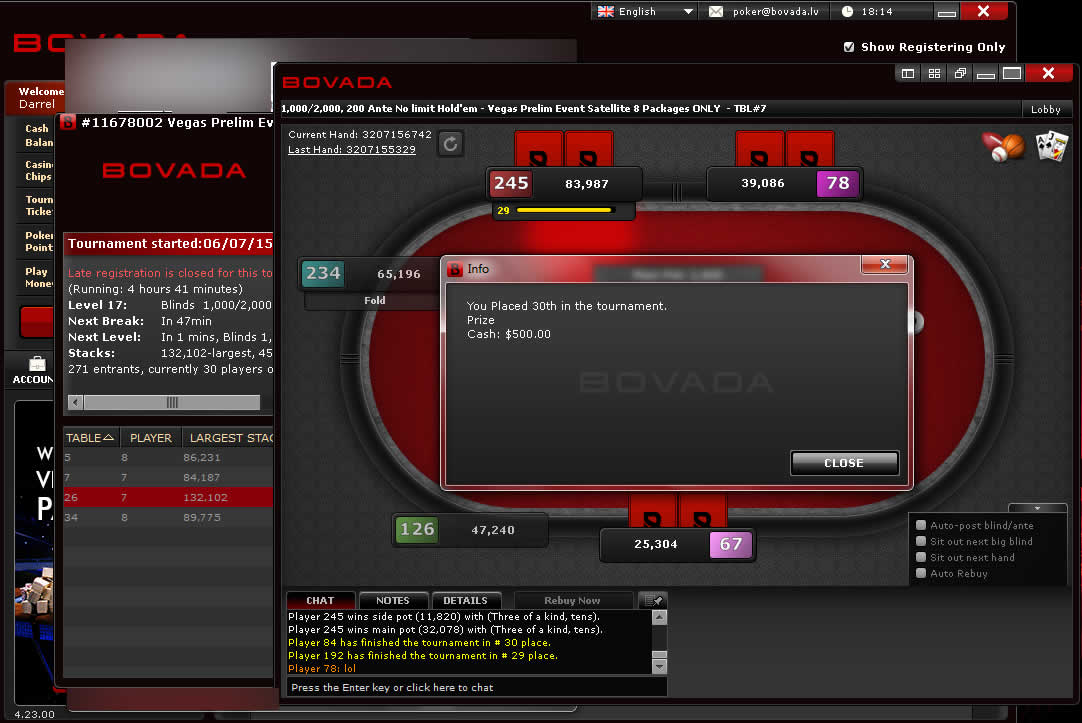 Shout out to Binh “Jimmy” Nguyen of Portland for his second 2015 WSOP cash. I’ve knocked him out.