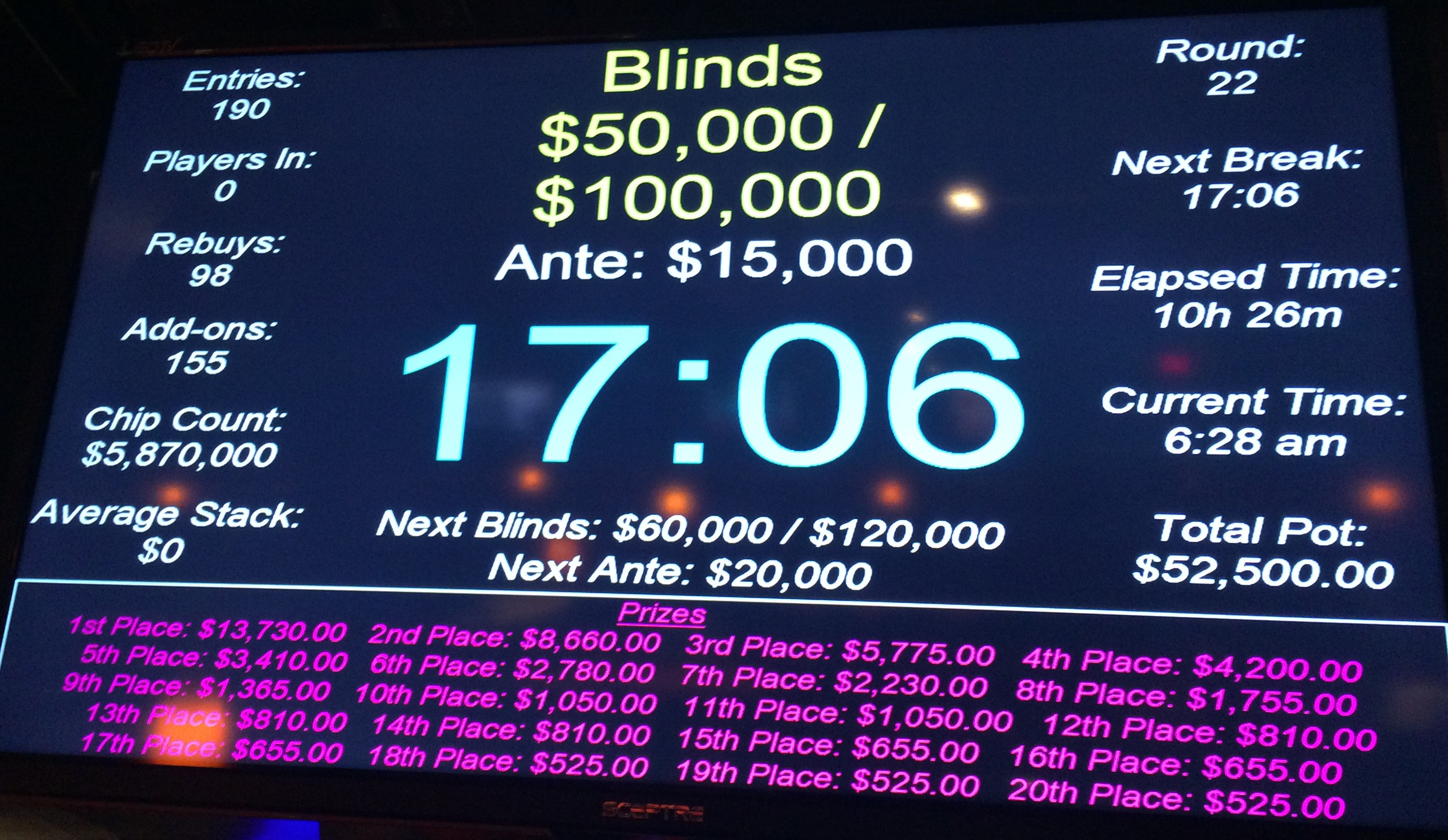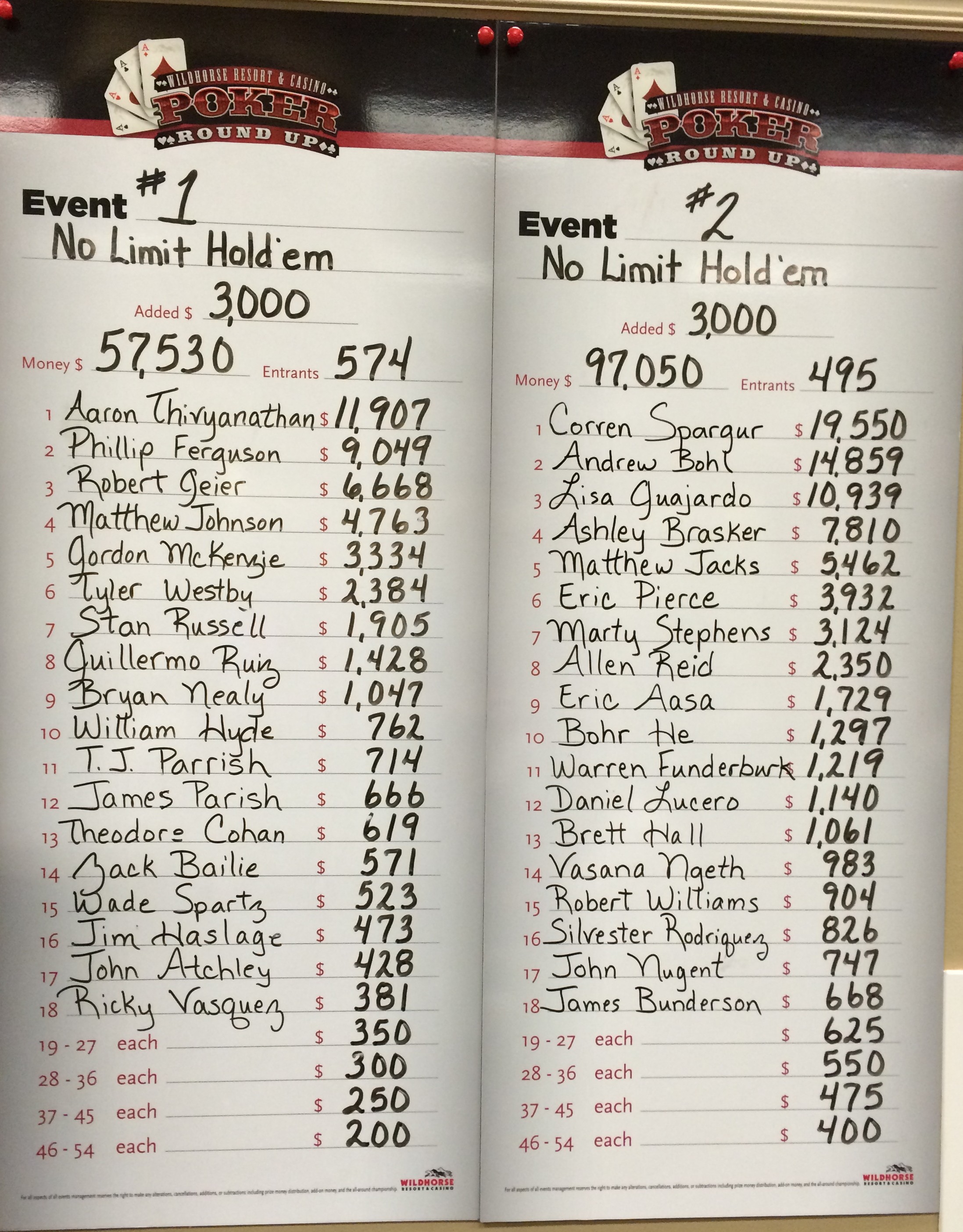 - Event #2: $150K guarantee, $570 buy-in. One entry day (1/16)