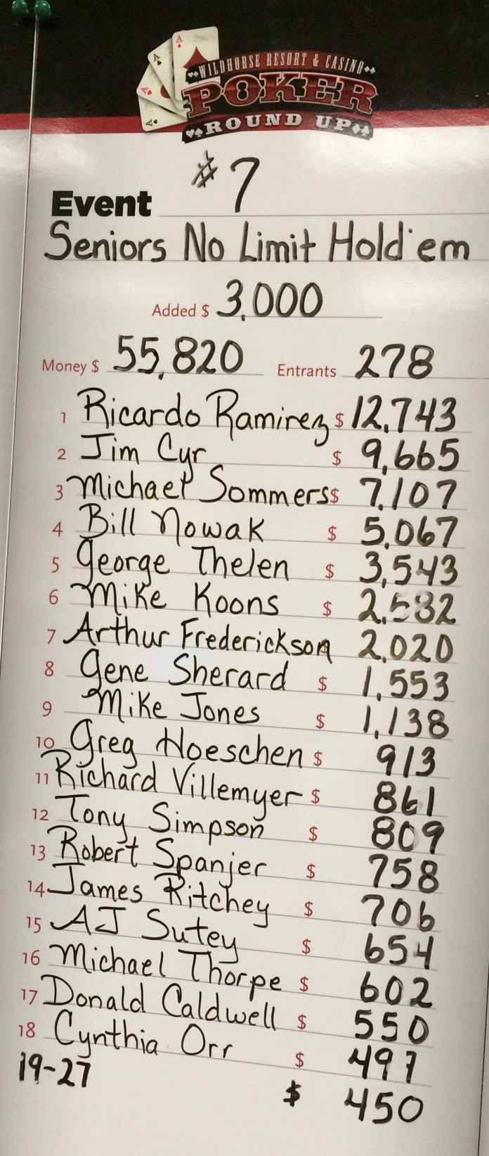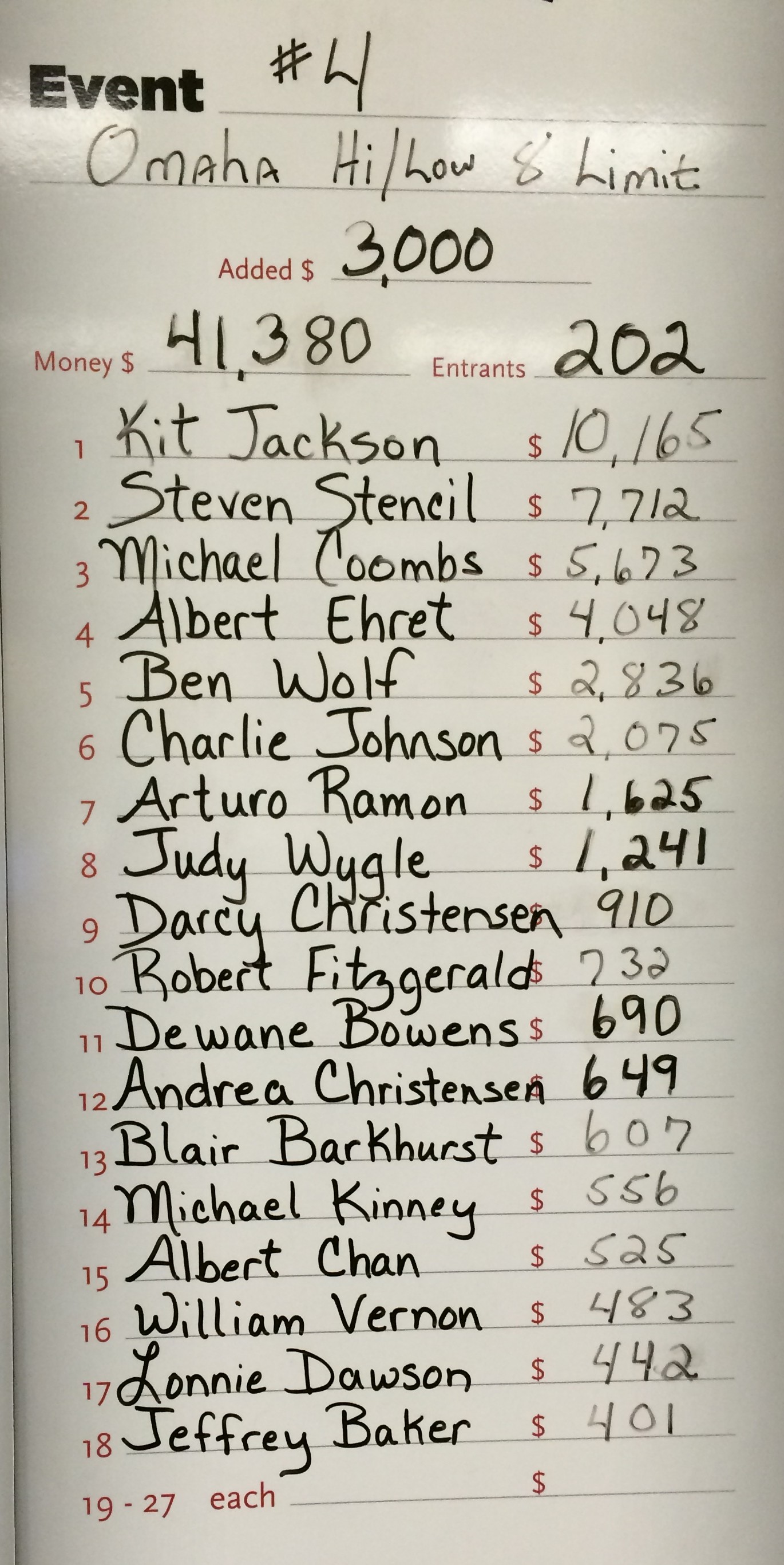 - Event #27: No guarantee Big O, $570 buy-in. One entry day (2/4)