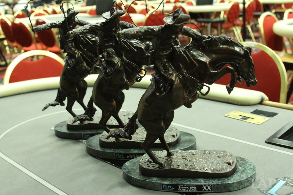 The trophies for LAPC events are distinctive sculptures based on Frederic Remington’s Western work (not what you really think of as “LA” these days, but hey), so if you’re tired of variations on clubs and spades on your shelf, this is the one to win.
