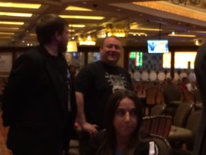 Funny thing is, that’s my photo. I only posted it to the WSOP media team’s Slack feed, but somehow it got around into the general population. And for the life of me, I can’t figure out why the lighting is so much better than any of the other photos I took, most of which make people look like trolls (see Stapleton and Hoke below, for example). Maybe it’s just Molly.