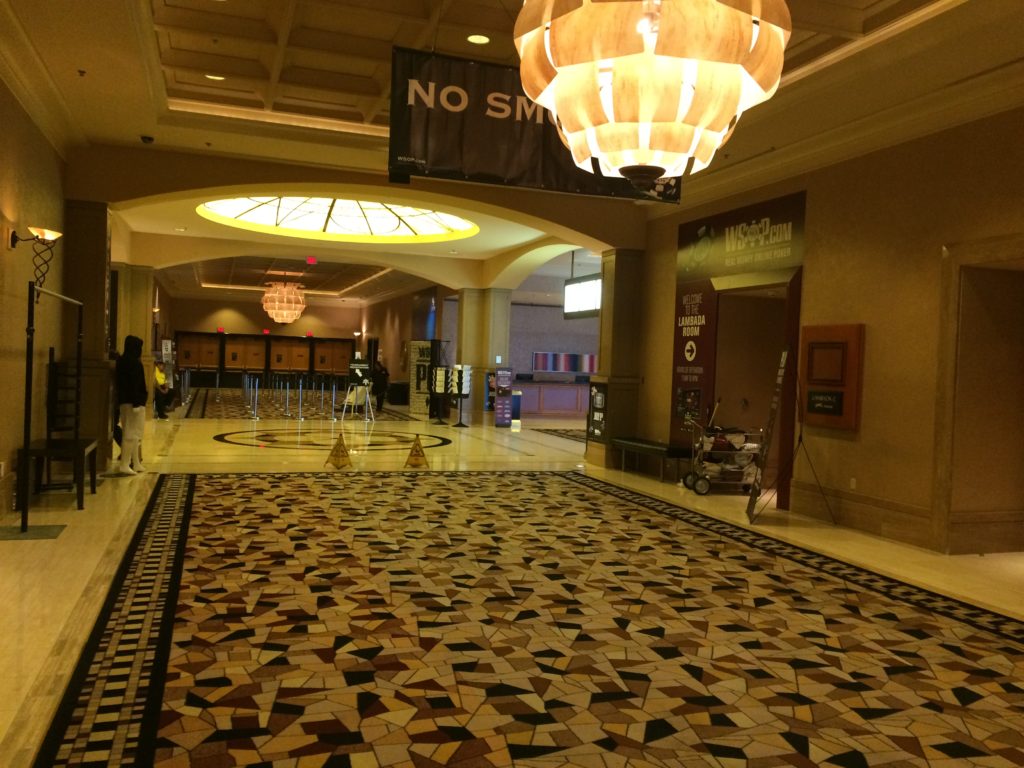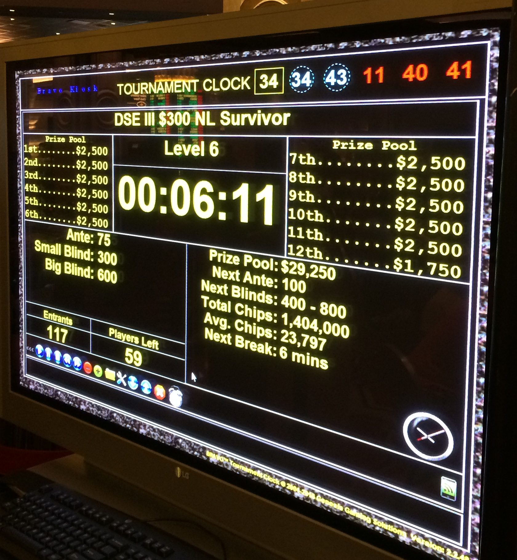 The first day of the event, I got to the Rio early and set up in the Amazon Room. The displays showed the tournament clock for the event. My colleague joined me and got his computer set up, but with fifteen minutes to go, nobody else at the table, no dealer, and no players, we were getting the feeling we were in the wrong place.