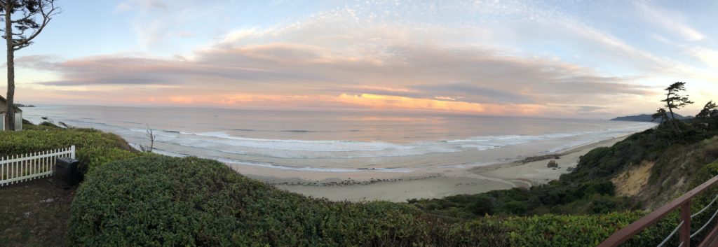 The last couple of weeks have been pretty light on poker for me since I headed to Moolack Beach just north of Newport with my wife and friends two weekends ago, Got a great AirBnB on a bluff above the beach with a bank of windows and a deck. The dark patch on the beach in the picture above is a hundred yards or so of crabs and kelp that washed up Friday night; the seagulls were having a field day.