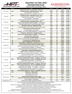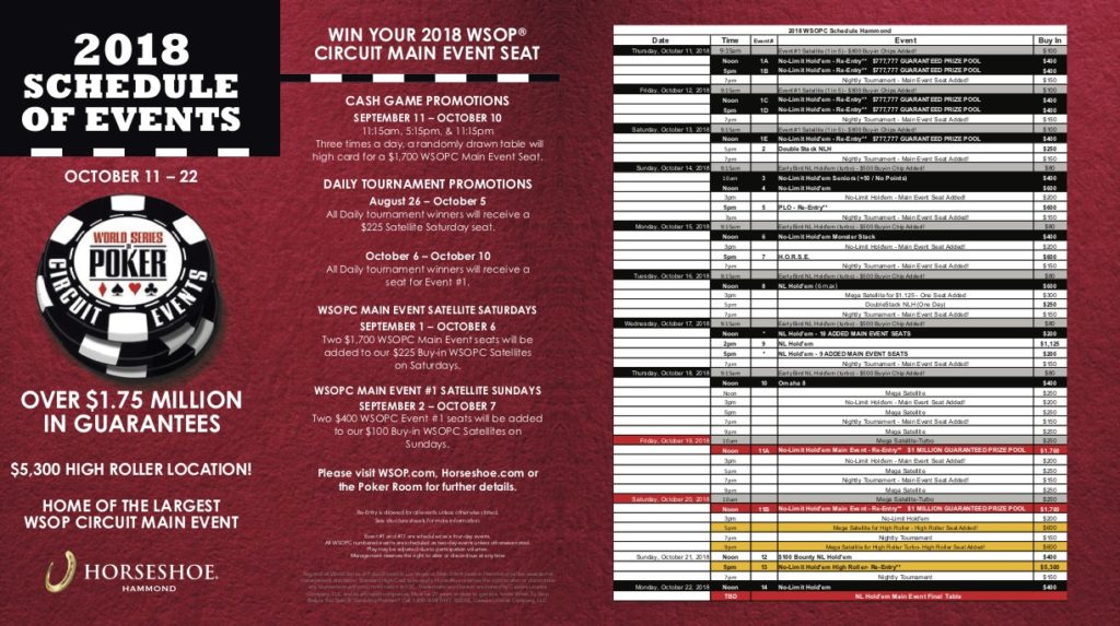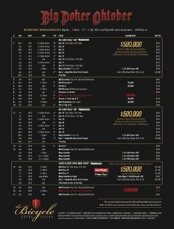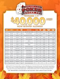 The final Saturday morning at 10am is a Final Event 5-Seat GTD Turbo Satellite. $50 buyin (10K), $10 fee, $10 dealer appreciation (2K). This also pays $575 vouchers.