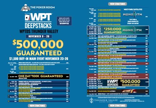 WPTDeepstacks Thunder Valley, Lucky Chances Gold Rush, WSOPC Planet Hollywood…all on the potential list. Might take a stab at WPT Five Diamond for a side event.