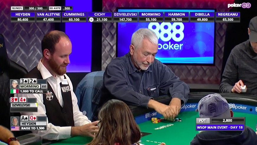 Day 1B had 1,914 entries, with 1,417 of them continuing on to Day 2 (merging Sunday with Day 1A for the first time, instead of playing separately). Players will be coming back to a big blind of 800, with 800 big blind ante.