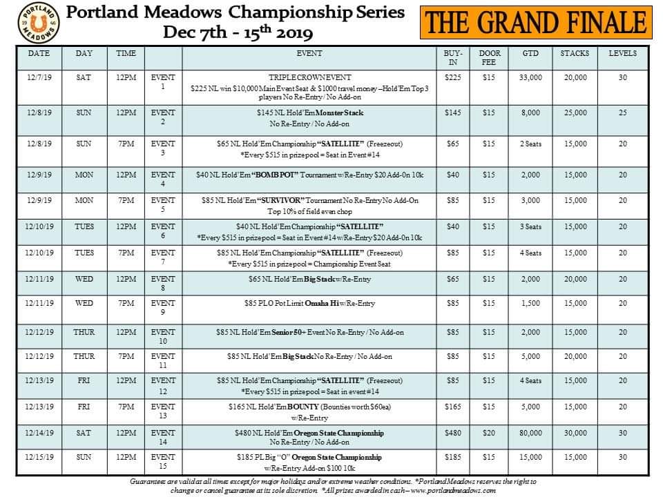 Anyway, tonight is the Bounty tournament at Portland Meadows, then it’s the $80K GTD tomorrow and the final game on Sunday: Big O! See you on the felt!