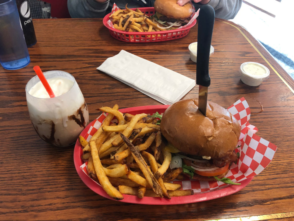 I only lasted a couple of hours in the $25K, by which it was check-in time at the motel, so I headed off to get our bags up to the room, then came back to wait for David to head up for dinner at the 60s Cafe and Diner for a burger and a Boozy Shake, the better to play the 3-Seat GTD NLHE Main Event Satellite (2 bullets and it didn’t help).