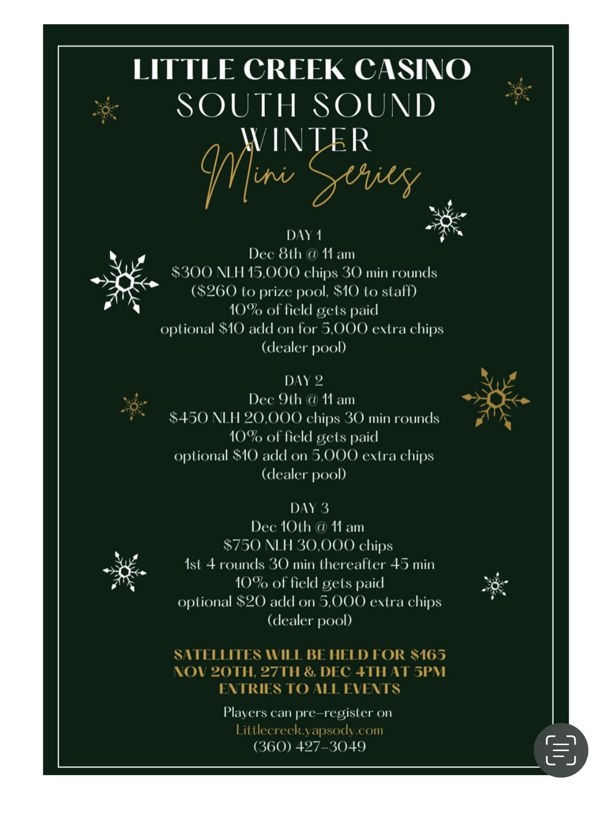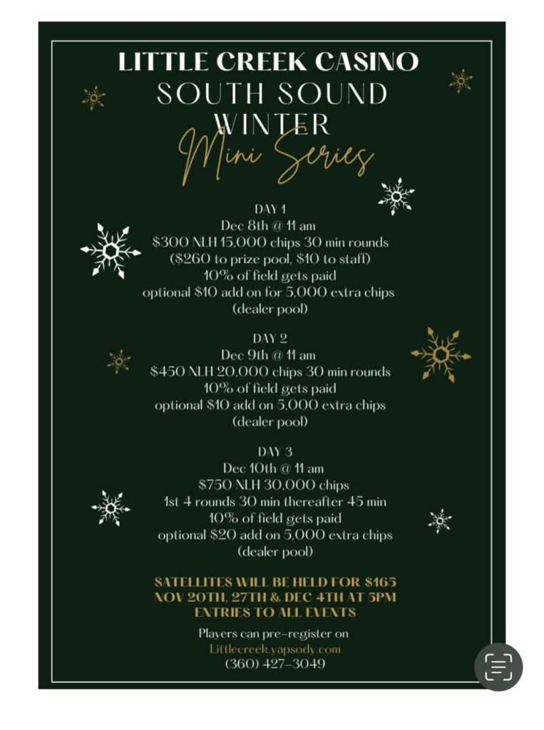 Out of town, Little Creek Casino west of Olympia has a Mini Series running in early December.