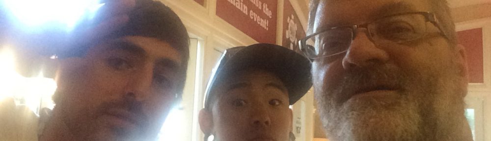 Since I woke up early, I got myself together and headed to the Rio. The early bird gets the nearby parking spot. The MutantMobile (aka a baller 1998 Ford Escort wagon). I set up my stuff in the live reporting office and saw that “Jammin'” Jay Zeman was planning to fortify himself along with some friends in the Hash House a Go Go down the hall. So I trekked over and was scanning one section of the restaurant when Angela Jordison hailed me from one of the benches near the entrance where she was also waiting for Jay. We chatted about her dinner the night before with a group that included Allen Kessler and the owner of the Lotus of Siam restaurant, among others. And we speculated on where Jay was, as the hour drew nearer to the time I had to go to work. Eventually, she made another pass through the restaurant, and not seeing Jay, walked down to the tournament area with me.