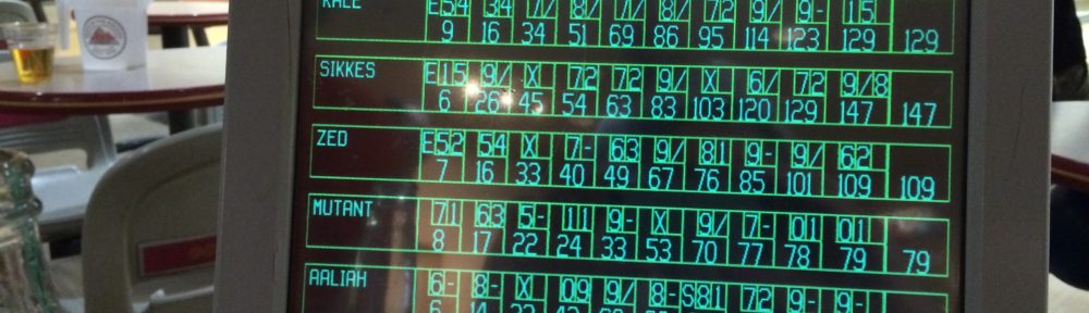 Got up and played online for a while yesterday. Some NLHE 6-Max, picked up 80bb (I’m going to start using small ‘bb’ for blinds and ‘BB’ for big bets since that’s how we’re doing it at the WSOP), then rapidly lost 100bb in PLO8. dropped down stakes, regained a little ground in NLHE and PLO8, then bricked three tournaments on WSOP.com and Bovada. Went out shopping for some supplies. Either the food in the WSOP employee lounge is incredibly healthy, or the combination of being up on my feet for much of our thirteen-hour days and being away from my wife’s cooking seems to have dropped some weight off of me, because I had to go out and buy a new belt. It was smaller than the last belt, which is a change.