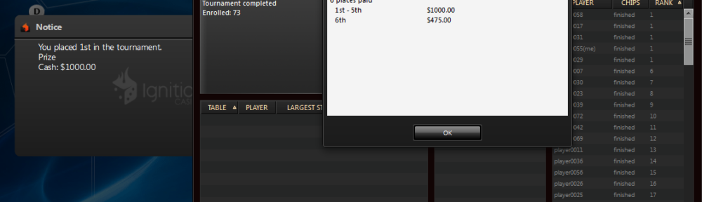 I’ve played the Thousandaire Maker tournament on Ignition Casino (and previously on Bovada) 48 times now. It runs most every night at 8:15pm Pacific.