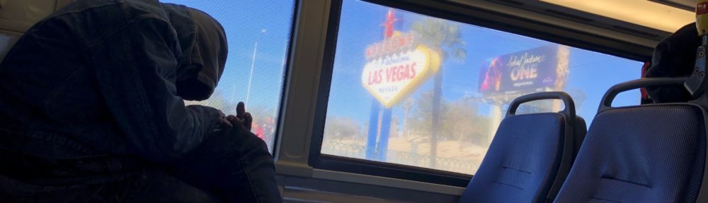 Rode the city bus from the airport to the South Strip Transit Center. Even though the public areas of Vegas are pretty white, I was the only non-African-American on the city bus leaving the airport at 8:15am on a chilly Saturday., and there were a dozen passengers and a driver.