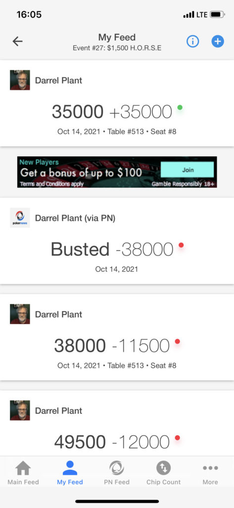 That was right about the time I went to do an update on MyStack and noticed that I’d been reported busted by PokerNews somehow.
