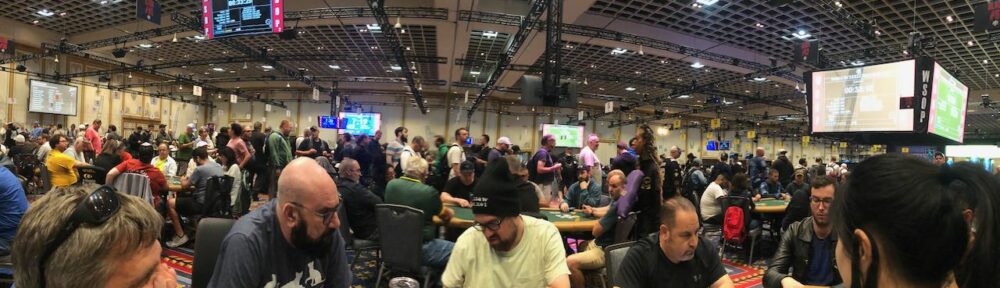 Event #35 $1,500 HORSE didn’t start until 2pm, so I started the day started playing 0.10/0.20 PLO on WSOP.com. Clawed back $5. Jumped into a $1K GTD NLHE Turbo and made the final table out of 172 entries ($49). Just missed the money in the $1K NLHE Fast Mini Mystery Bounty but I picked up $6 in bounties. Busted the $750 GTD NLHE Deepstack Super Turbo, then took a bit of a flier on the $55 buy-in (all my buy-ins so far we’re $11 or less) $5K NLHE Fast Mystery Bounty, but only made it half-way through the field.