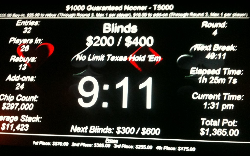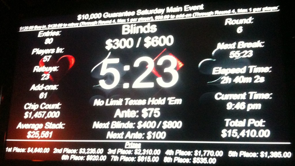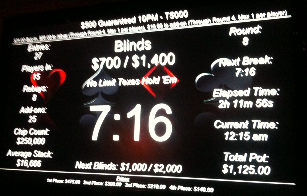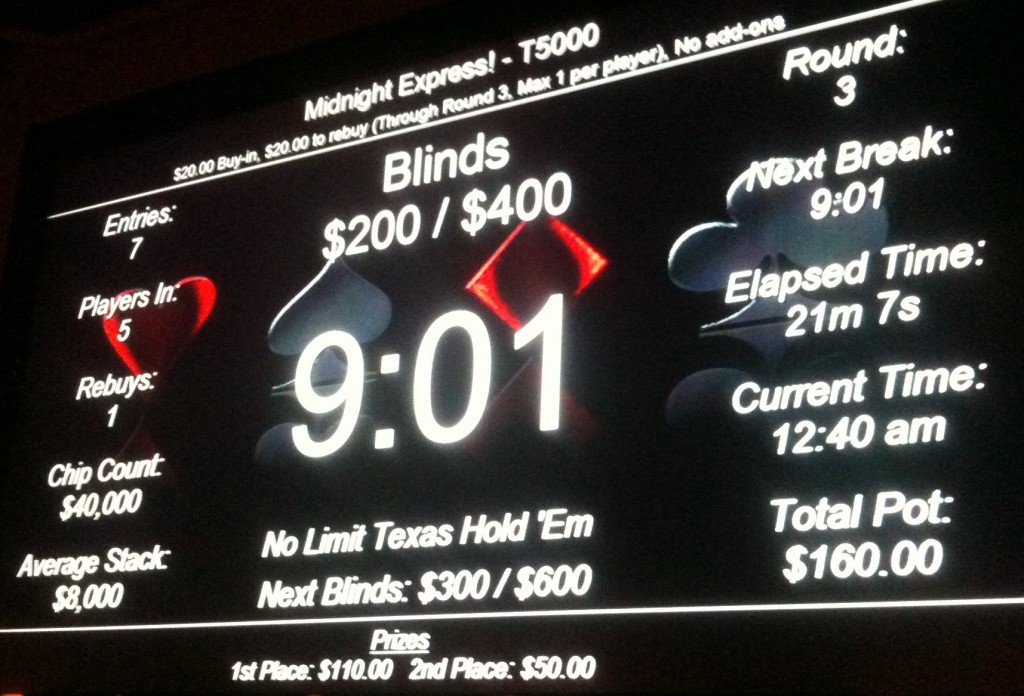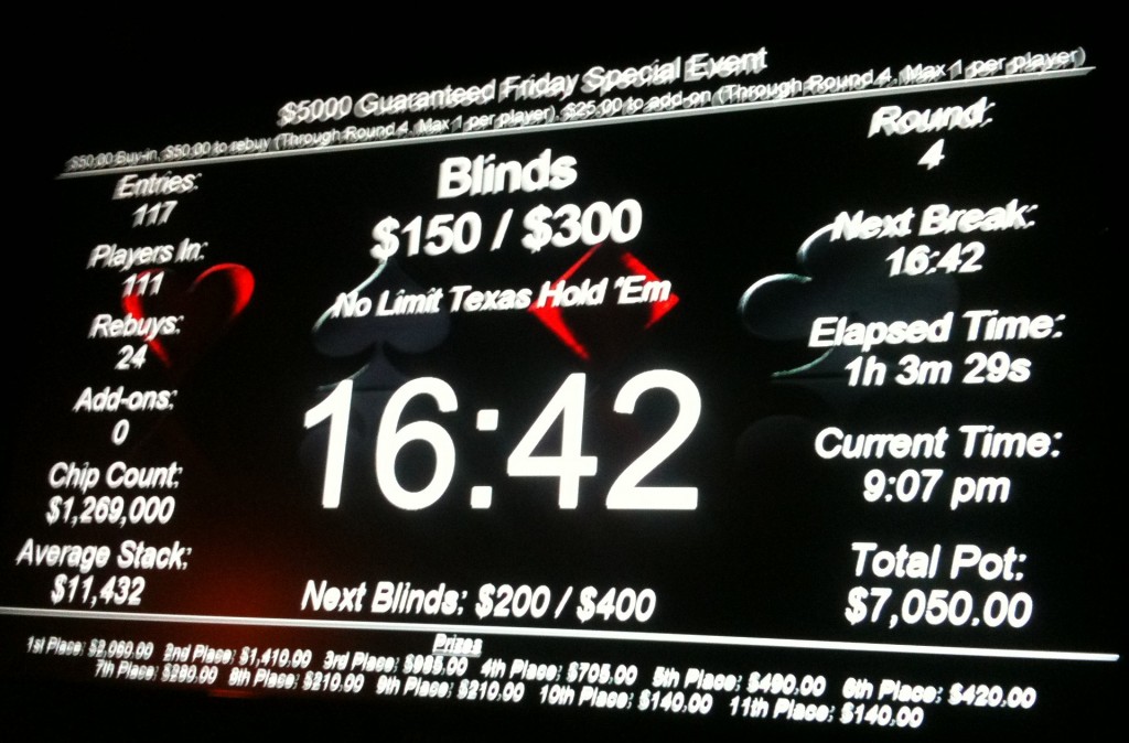 Is there a sweet spot? Is there a magic number that makes it more likely that your tournament cashes will be profitable cashes? So much of that decision rests on variables like re-buy and payout structures, but in Poker Mutant’s humble opinion—in the world of Portland poker rooms, at least—you’re more likely to be profitable in events with 75 or more entrants. Apart from the opportunity of winning a big stake if you take down the top prize, which can have a pot to cost ratio of 20:1 or 30:1, the average cash in a field of that size is large enough to maintain profitability for most above-average players. You’ll still find Poker Mutant at the tables for smaller games, but our focus is on those bigger tournaments for the time being.