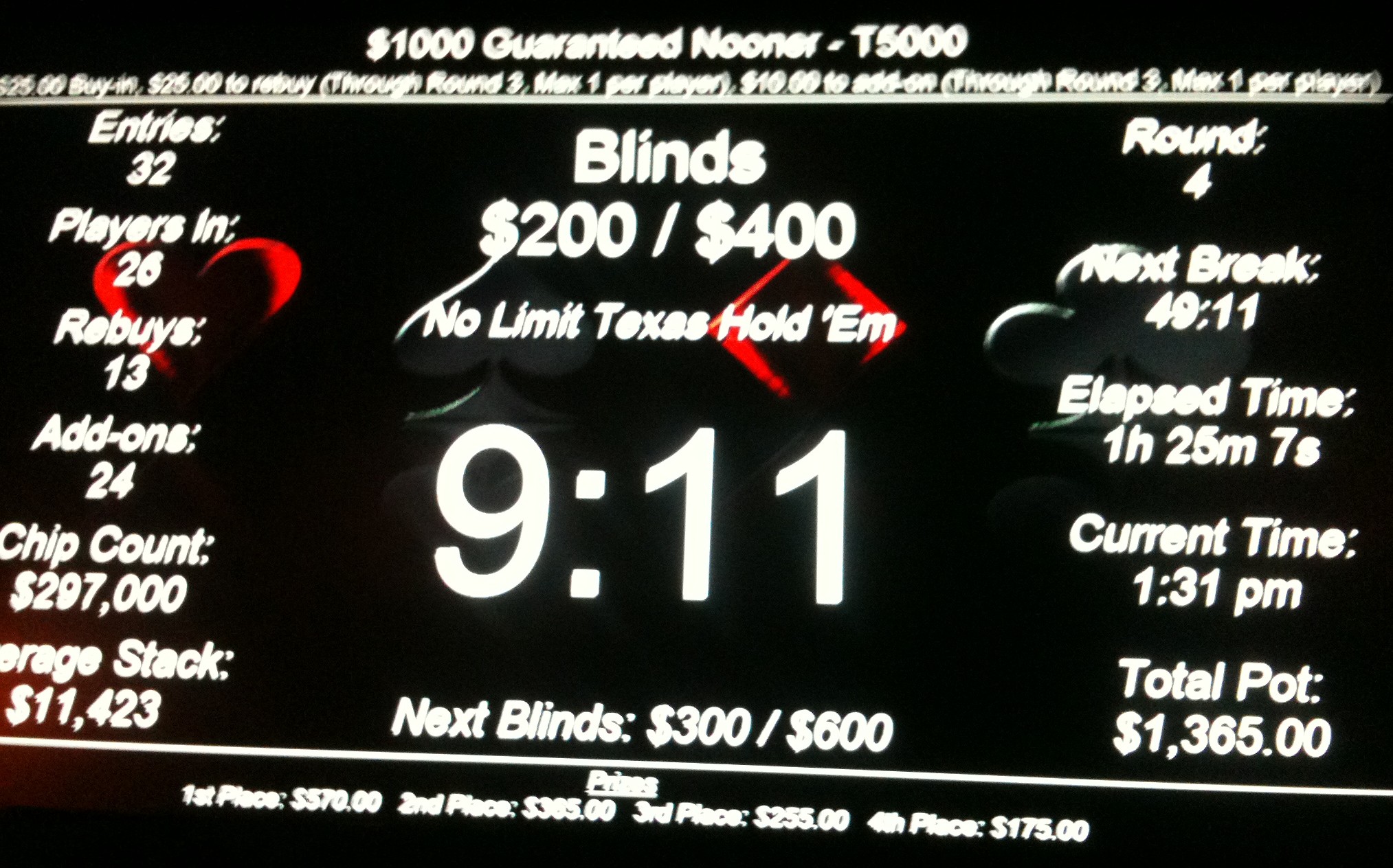A $350 payout for a $25 entry tournament is a fairly decent-sized prize, though. Depending on the prize structure, that’s more or less the top prize of a $1,000 guarantee tournament with 25 or 26 players. The median payout in a tournament that size would be less than $300; unless you got the top spot, you’d be dragging down your mROI.